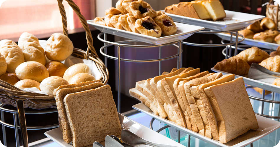 Pães, bolos e mini sanduíches